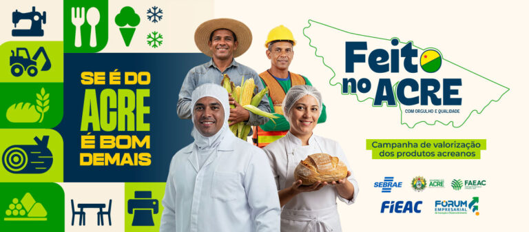 Valorizar o que é produzido no próprio estado, fortalecer a economia local e estimular escolhas de consumo mais conscientes. São esses os pilares da campanha “Feito no Acre”, lançada em dezembro de 2025 pelo Fórum Empresarial de Inovação e Desenvolvimento do Acre, pela Federação das Indústrias do Acre (FIEAC), pela Federação da Agricultura e Pecuária do Estado do Acre (FAEAC), pelo Governo do Estado, por meio da Secretaria de Indústria, Ciência e Tecnologia (SEICT), e pelo Sebrae/AC.