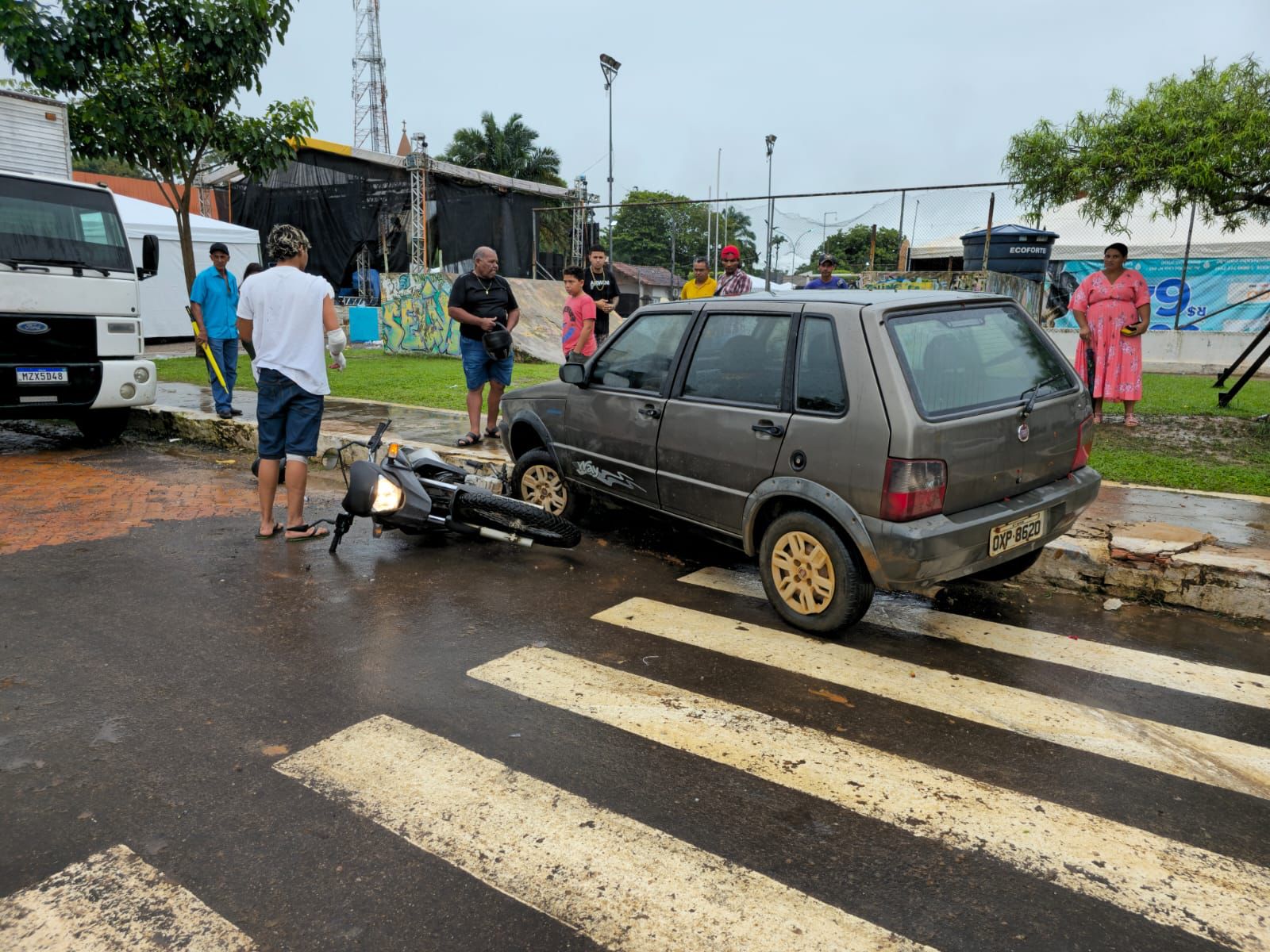Carro perde o controle e atinge motocicleta nas proximidades do quartel da PM em Xapuri