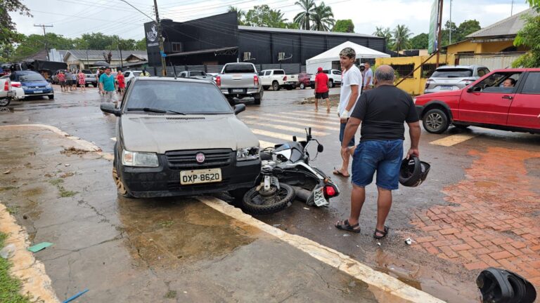 Carro perde o controle e atinge motocicleta nas proximidades do quartel da PM em Xapuri