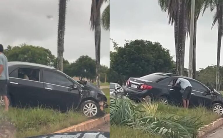 Um acidente foi registrado na tarde desta terça-feira (27) na Avenida Amadeu Barbosa e chamou a atenção de quem passava pelo local. Um Toyota Corolla preto ficou seriamente danificado e parou sobre a divisa das pistas, o que indica a intensidade da colisão. As imagens e primeiras informações são do site Alerta Cidade.