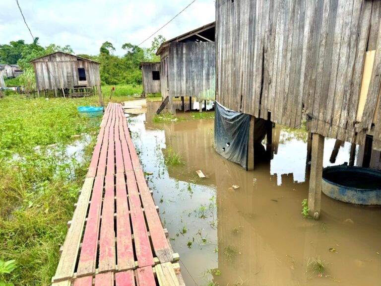 A cheia do rio Iaco já começa a causar transtornos a moradores de Sena Madureira. No bairro Praia do Amarilho, a água atingiu os quintais de diversas residências, elevando a preocupação de famílias que vivem em áreas historicamente vulneráveis às alagações.