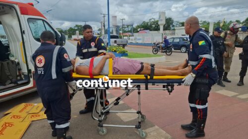 O ciclista Sidney Silva de Souza, de 47 anos, ficou ferido após invadir a preferencial de uma rotatória na manhã deste sábado (10), na Via Chico Mendes, no bairro Comara, região do Segundo Distrito de Rio Branco.
