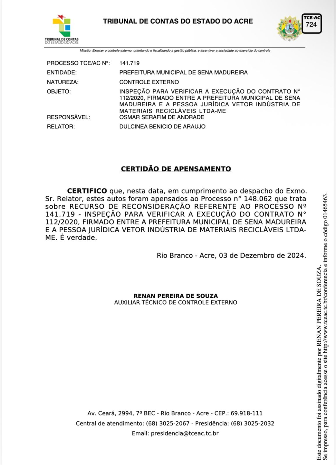 Rio Branco/AC, 03 de dezembro de 2024.