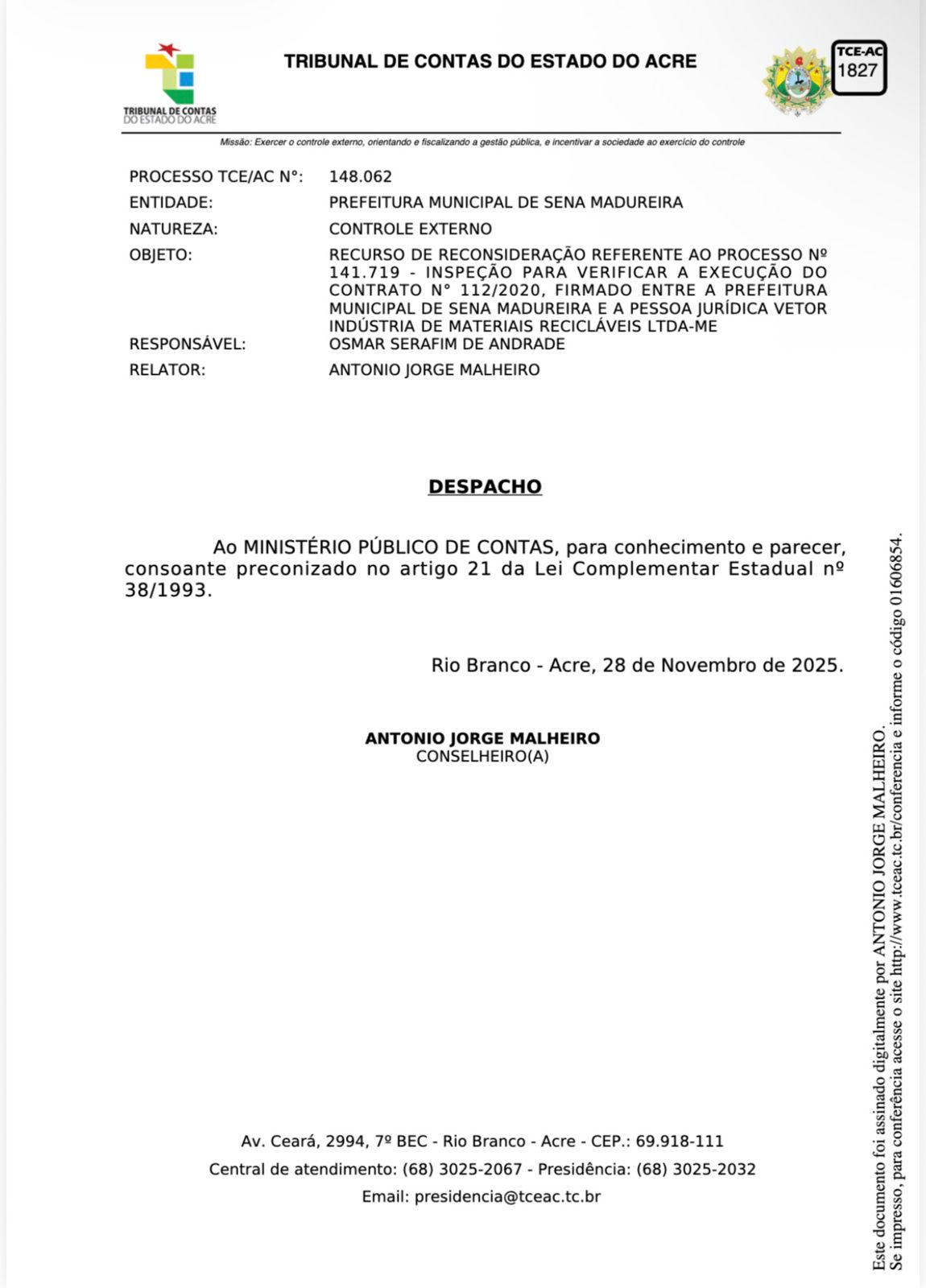 Todos os documentos comprobatórios seguem anexos (abaixo), não se tratando de versão, mas de fatos oficialmente certificados pelo Tribunal de Contas do Estado do Acre.