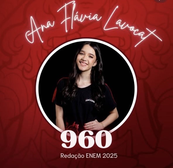 Nota especialíssima para a sobrinha do coração, Ana Flávia Lavocat Holanda, que brilhou intensamente ao alcançar 960 na redação do ENEM 2025. Resultado de disciplina, talento, foco e uma preparação feita com alma e coragem dessas que a gente aplaude de pé. Hurrruuuuu!