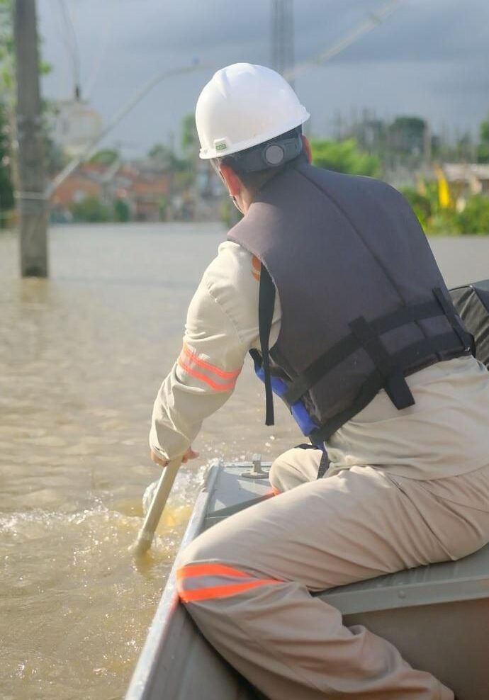 Conforme o avanço das águas, a rede elétrica pode ser desligada em pontos específicos para garantir a segurança da população, sendo restabelecida somente quando houver condições seguras.
