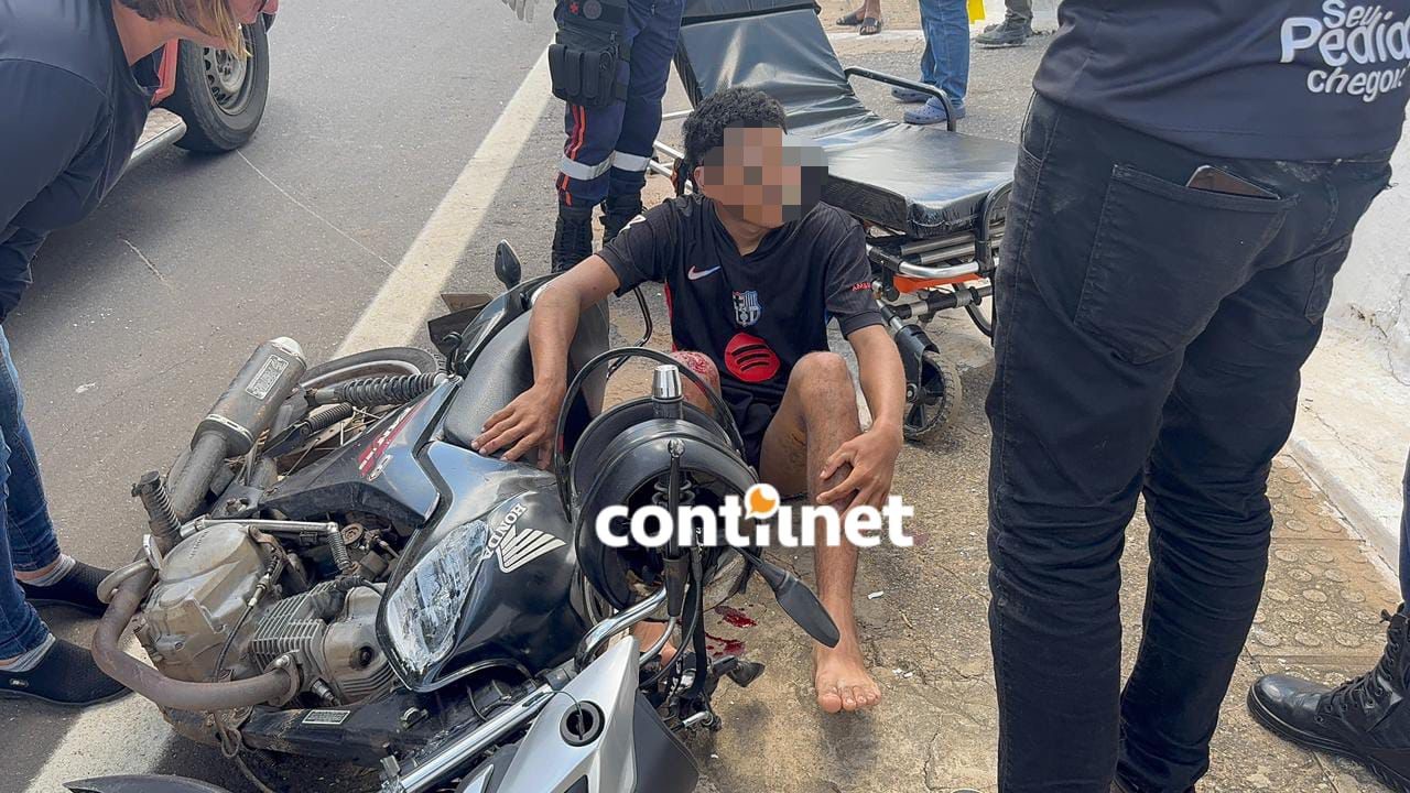 O entregador Matheus Lima, de 20 anos, sofreu lacerações nas pernas após colidir a motocicleta que conduzia contra um ônibus do transporte coletivo no início da tarde desta segunda-feira (19), na Rua Rio de Janeiro, no bairro Dom Giocondo, em Rio Branco.