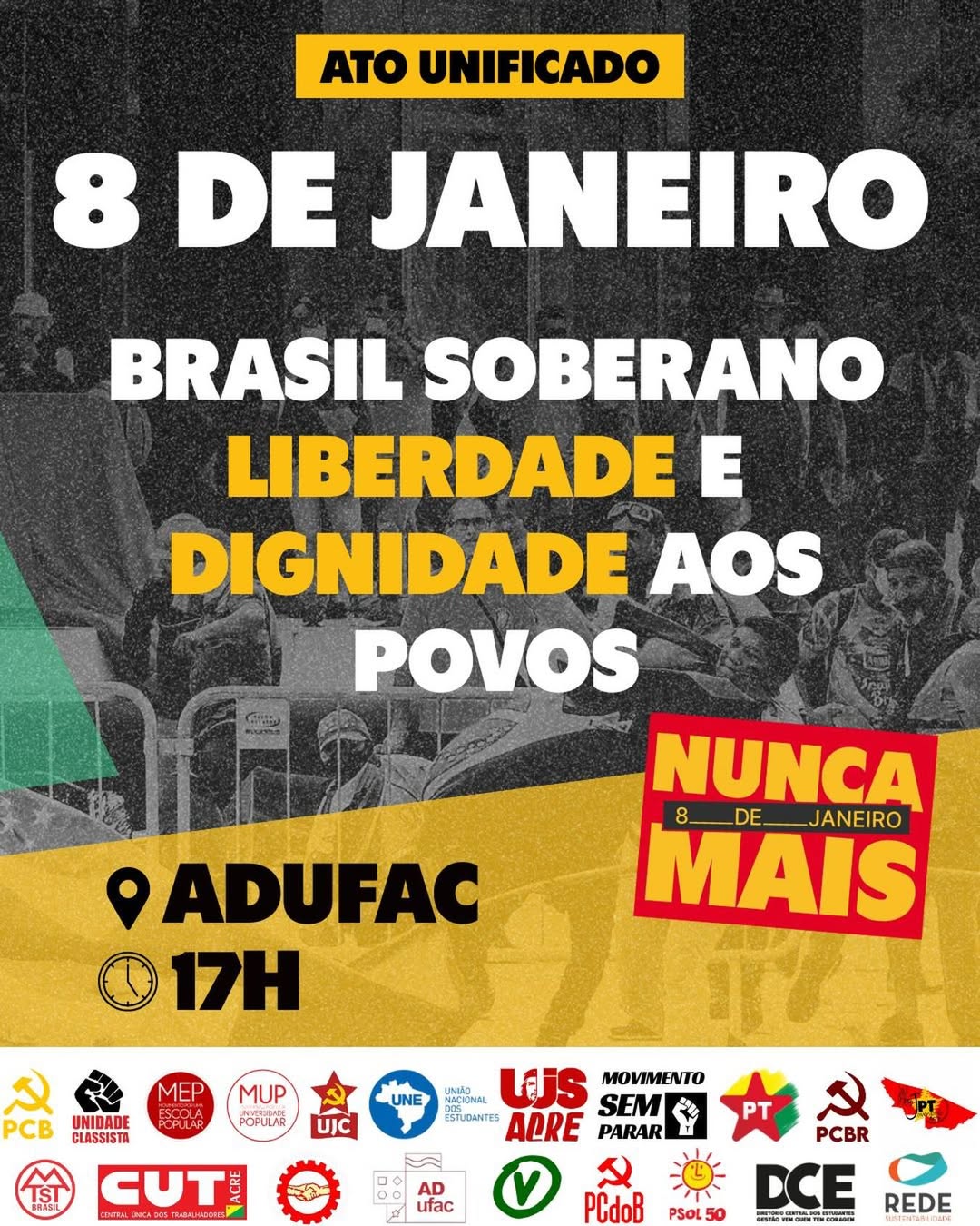 A manifestação está prevista para ocorrer a partir das 17h, na sede da Associação dos Docentes da Universidade Federal do Acre (Adufac), em Rio Branco. Entre as pautas defendidas durante o ato estão a soberania nacional, a liberdade, a dignidade dos povos e o enfrentamento a qualquer forma de ameaça às instituições democráticas.