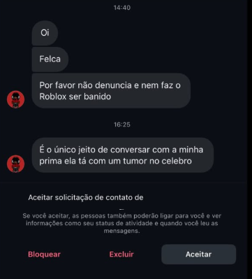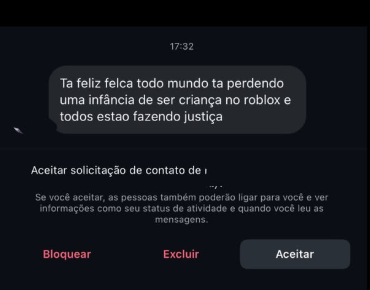 “Eu estou sendo atacado por crianças na minha DM por conta que o Roblox tirou o chat de voz”, escreveu o influenciador ao publicar prints de ameaças e ataques que vem recebendo. “Felca, eu vou te matar”, diz uma das mensagens.