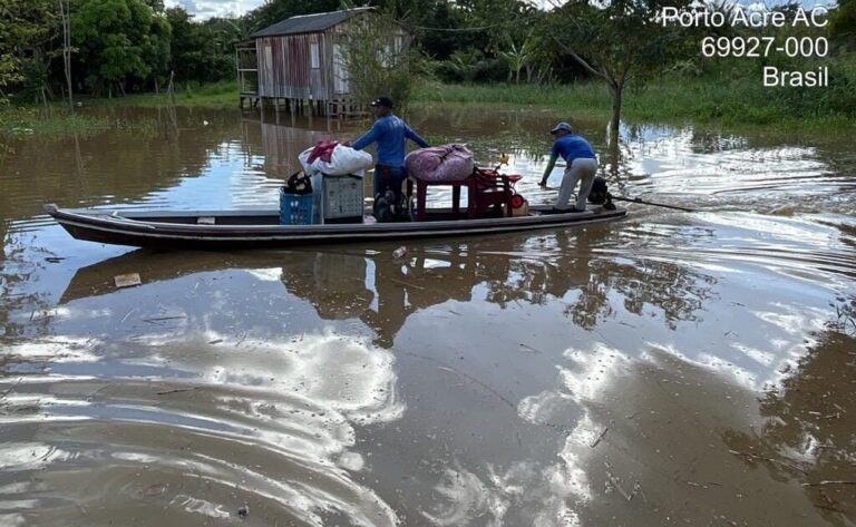 De acordo com o documento, entre os dias 24 e 27 de dezembro, o volume de chuva acumulado chegou a 160 milímetros, elevando o nível do Rio Acre para 12,64 metros, acima da cota de transbordamento, que é de 12,50 metros. A inundação já atinge comunidades, especialmente ribeirinhas, causando prejuízos, dificuldades de acesso e impactos no transporte, na saúde pública e na rotina das famílias.