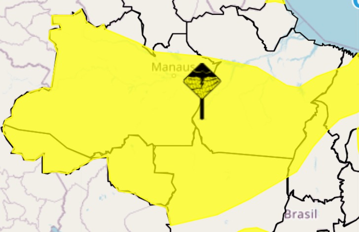 O alerta, classificado como Perigo Potencial, começou a valer às 9h15 e segue até 23h59. De acordo com o Inmet, são esperadas chuvas entre 20 e 30 milímetros por hora, podendo chegar a até 50 milímetros ao longo do dia, além de ventos com intensidade entre 40 e 60 km/h.
