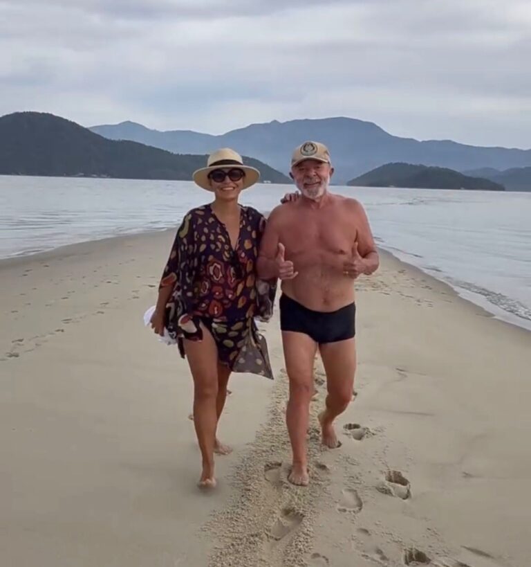 A primeira-dama Janja Lula da Silva publicou nas redes sociais um vĂdeo em que o presidente Luiz Inácio Lula da Silva aparece tomando banho de mar, vestindo apenas uma sunga, durante uma viagem ao Rio de Janeiro.