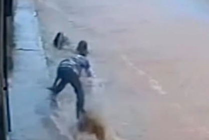 No vídeo, a força da água surpreende as vítimas, que são levadas pela correnteza em poucos segundos. Ao perceber a situação, um comerciante que estava próximo tenta agir rapidamente para ajudar no resgate. No entanto, a intensidade da enxurrada é tão grande que ele também acaba sendo arrastado por alguns instantes.