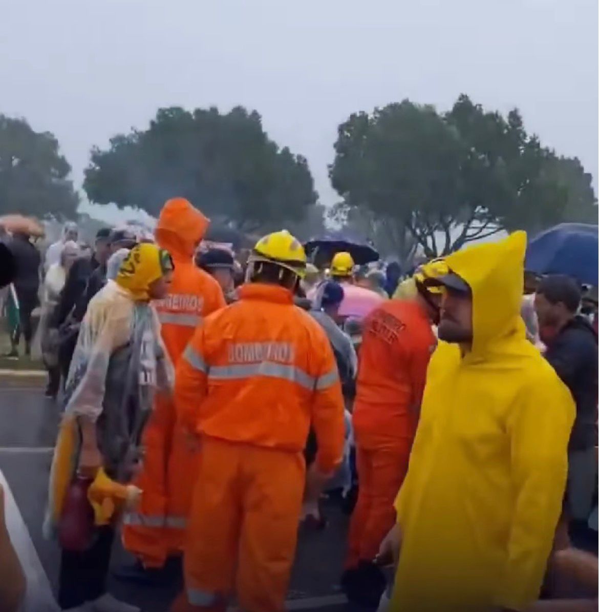 Manifestantes ficaram feridos na tarde deste domingo (25) após serem atingidos por um raio durante um forte temporal. O incidente ocorreu nas proximidades do Memorial JK, no