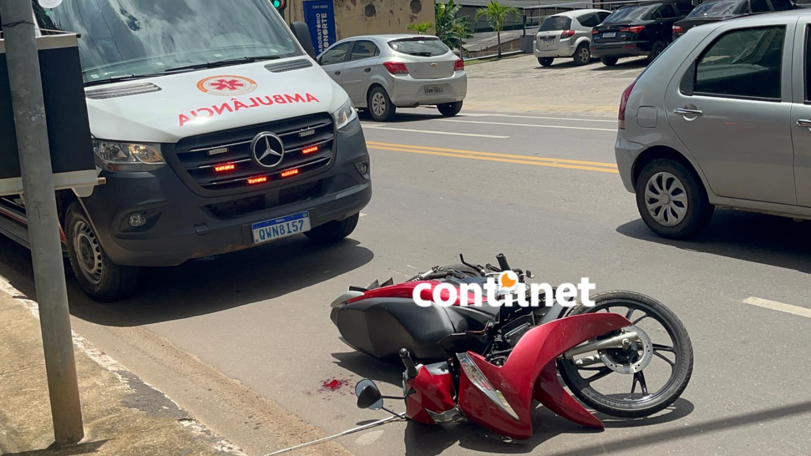 A motociclista Nilcineide Barbosa da Silva, de 51 anos, ficou ferida e fraturou dois dedos após colidir na traseira de uma caminhonete, na tarde desta quinta-feira (29), na Rua Rio de Janeiro, no bairro Floresta, em Rio Branco.