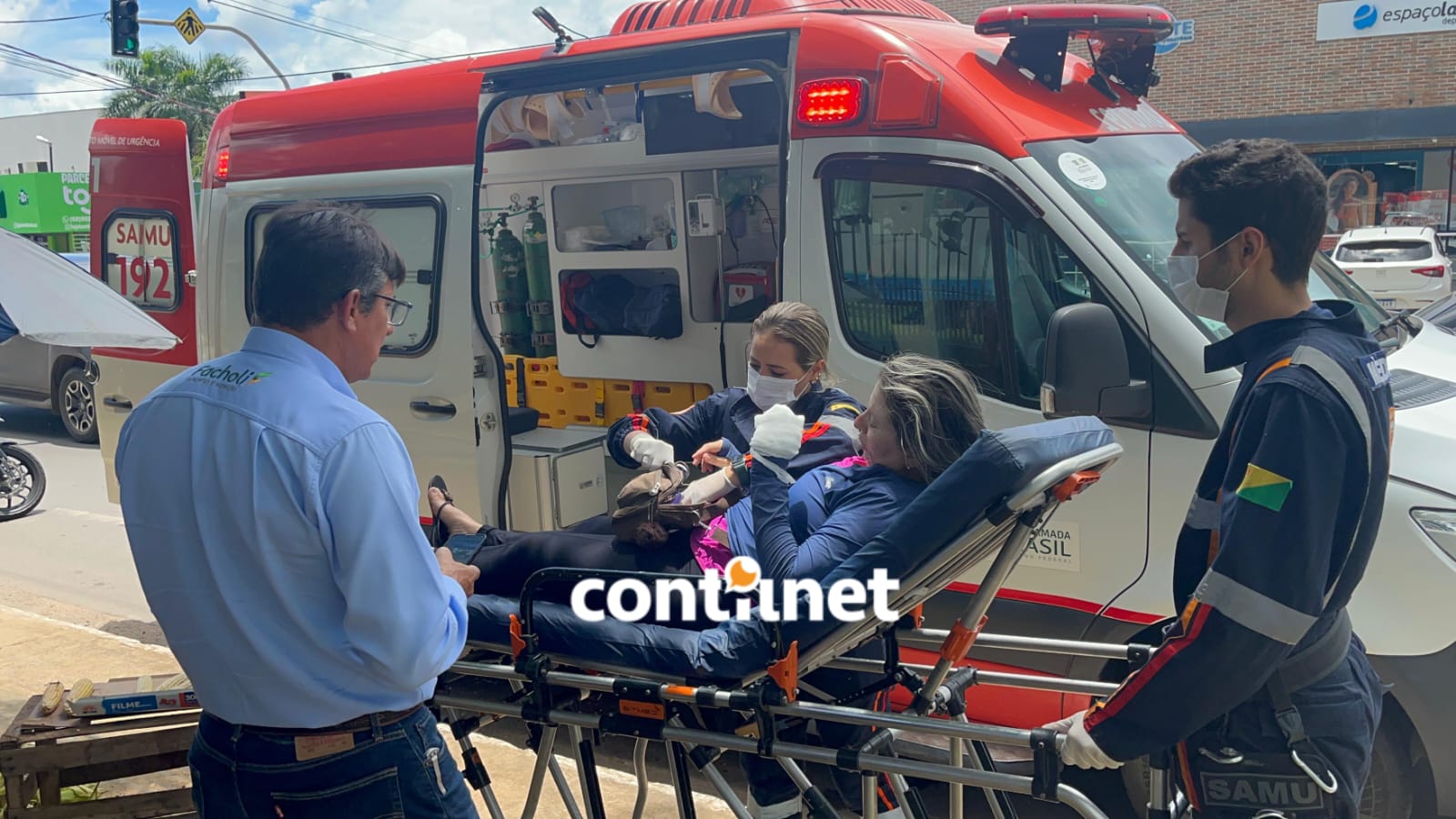 Acidente ocorreu após frenagem brusca de caminhonete; vítima foi socorrida pelo Samu e levada ao pronto-socorro