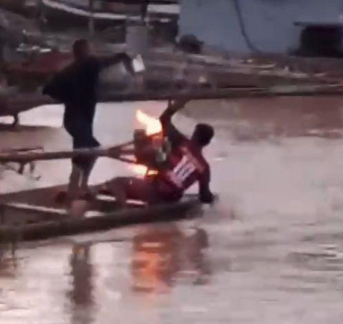 Um morador do município de Feijó, no interior do Acre, passou por um grande susto na tarde desta segunda-feira (05) quando o motor de sua embarcação incendiou repentinamente e causou pânico entre populares que estavam no porto da cidade.