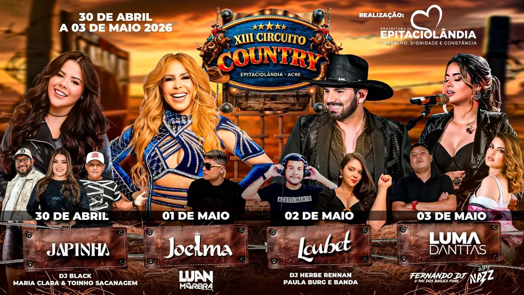Com estrutura reforçada, grandes shows e valorização dos talentos locais, o XIII Circuito Country de Epitaciolândia promete mais uma edição histórica, consolidando-se como um dos maiores eventos culturais do estado do Acre.
