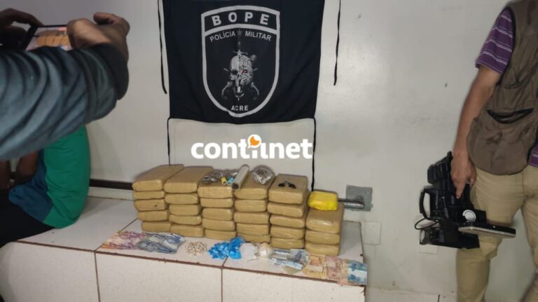 Uma ação integrada das forças de segurança pública resultou na prisão de três suspeitos e na apreensão de mais de 30 quilos de drogas na tarde desta quarta-feira (21), em Rio Branco. A ofensiva faz parte da Operação Tempestade, deflagrada pelo Núcleo de Inteligência da Polícia Militar em conjunto com a Inteligência do Batalhão de Operações Especiais (BOPE).