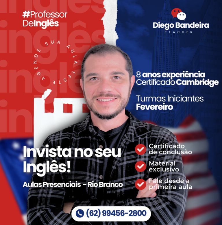 Quem deseja aprender inglês de forma prática e conectada com o uso real do idioma tem uma nova oportunidade a partir de fevereiro. Estão abertas as inscrições para turmas iniciantes de inglês, conduzidas pelo professor Diego Bandeira, profissional com mais de oito anos de experiência em sala de aula e certificação internacional Cambridge (FCE).