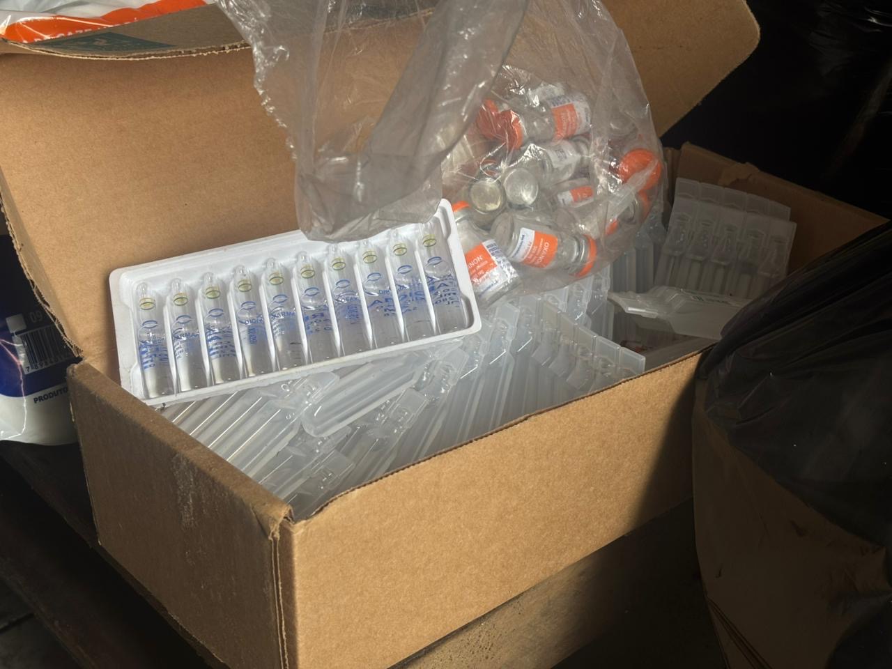 Entre os materiais identificados pela reportagem no local, destacam-se sensores de glicose e ampolas de medicamentos variados; caixas de luvas e seringas; algodão e outros insumos de uso hospitalar restrito.