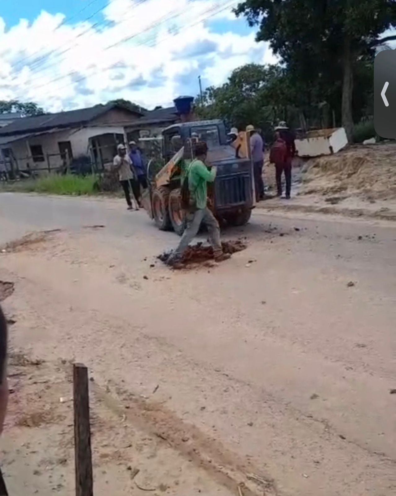 No vídeo, homens da Secretaria de Obras aparecem tapando os buracos com barro, o que coloca em xeque a qualidade do trabalho, já que o inverno amazônico tem predominado e, na primeira chuva, o serviço pode ser desfeito.