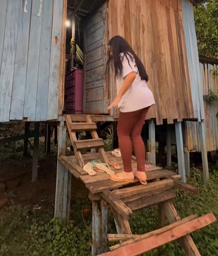 Influenciadora acreana Rogéria Rocha durante visita a residência em condições precárias em Rio Branco/Foto: Reprodução