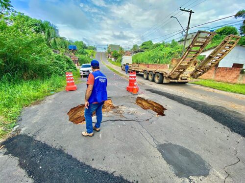 “Devido às intensas chuvas, houve um deslizamento que acabou achatando o bueiro e fechando totalmente a drenagem. Estamos retirando esses bueiros para colocar novos, corrigir o serviço e, em seguida, refazer o asfalto nesse trecho da Avenida São Paulo”, explicou o secretário Carlos Alves.
