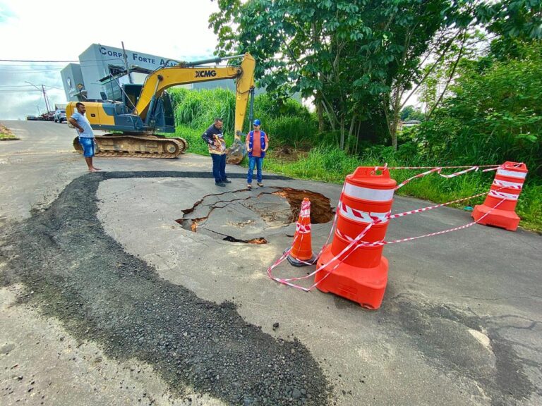 O secretário municipal de Obras, Carlos Alves, esteve no local acompanhando de perto os trabalhos junto às equipes técnicas. Segundo ele, o problema foi causado pelo período chuvoso intenso, que provocou um deslizamento de terra e acabou comprometendo o sistema de drenagem da via, afundando um bueiro, impedindo o escoamento adequado da água.