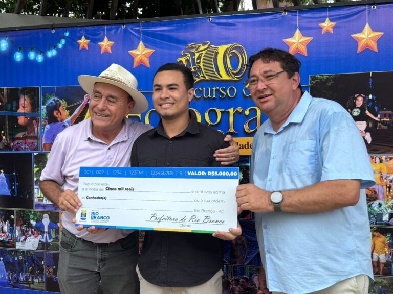 A Prefeitura de Rio Branco realizou, nesta sexta-feira (30), na Praça da Revolução, no Centro da cidade, a cerimônia de entrega da premiação do 5º Concurso de Fotografias de Natal, marcando o encerramento oficial da programação natalina de 2025. A iniciativa integra o projeto Natal de Vida, Esperança e Dignidade.