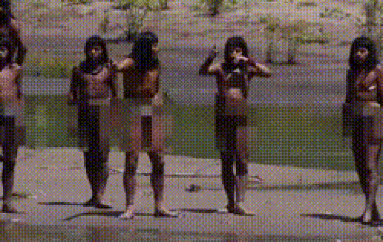 Mais de 50 indígenas Mashco Piro apareceram perto da aldeia dos indígenas Yine de Monte Salvado, no sudeste do Peru/Foto: Survival