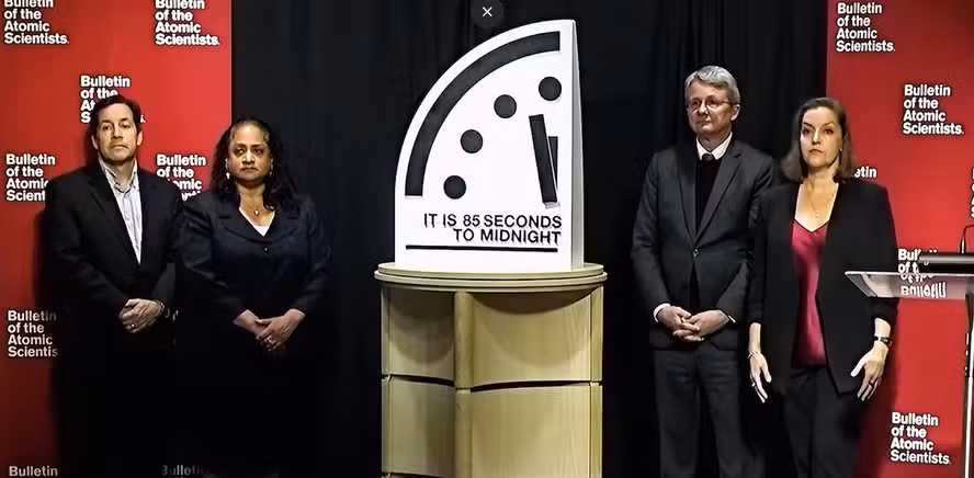 O Relógio do Juízo Final, conhecido como ‘Doomsday Clock’, atualizou nesta terça-feira (27) para o ano de 2026 faltando 85 segundos para meia-noite. Ele mede o quanto próximo o mundo está de uma guerra que envolva armas nucleares e a tensão mundial.