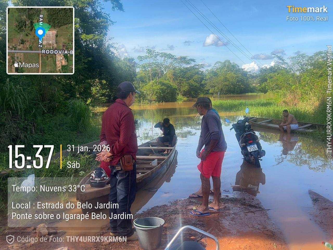 O município segue em estado de emergência devido à elevação do Rio Acre, que atingiu 15,16 metros na medição divulgada às 18h deste sábado (31). De acordo com a Defesa Civil, há indicativo de aumento do nível, com previsão de alcançar 15,25 metros até as 5h de domingo.