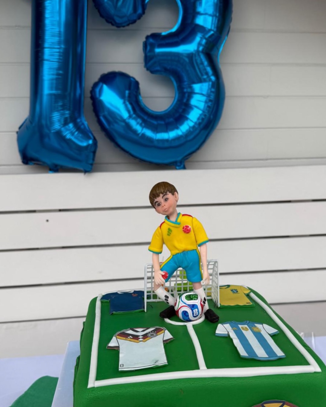 Shakira compartilhou nos stories de suas redes sociais imagens da festa de 13 anos de seu filho Milan, realizada recentemente. A celebração teve como tema o futebol, paixão que marcou a decoração do evento.