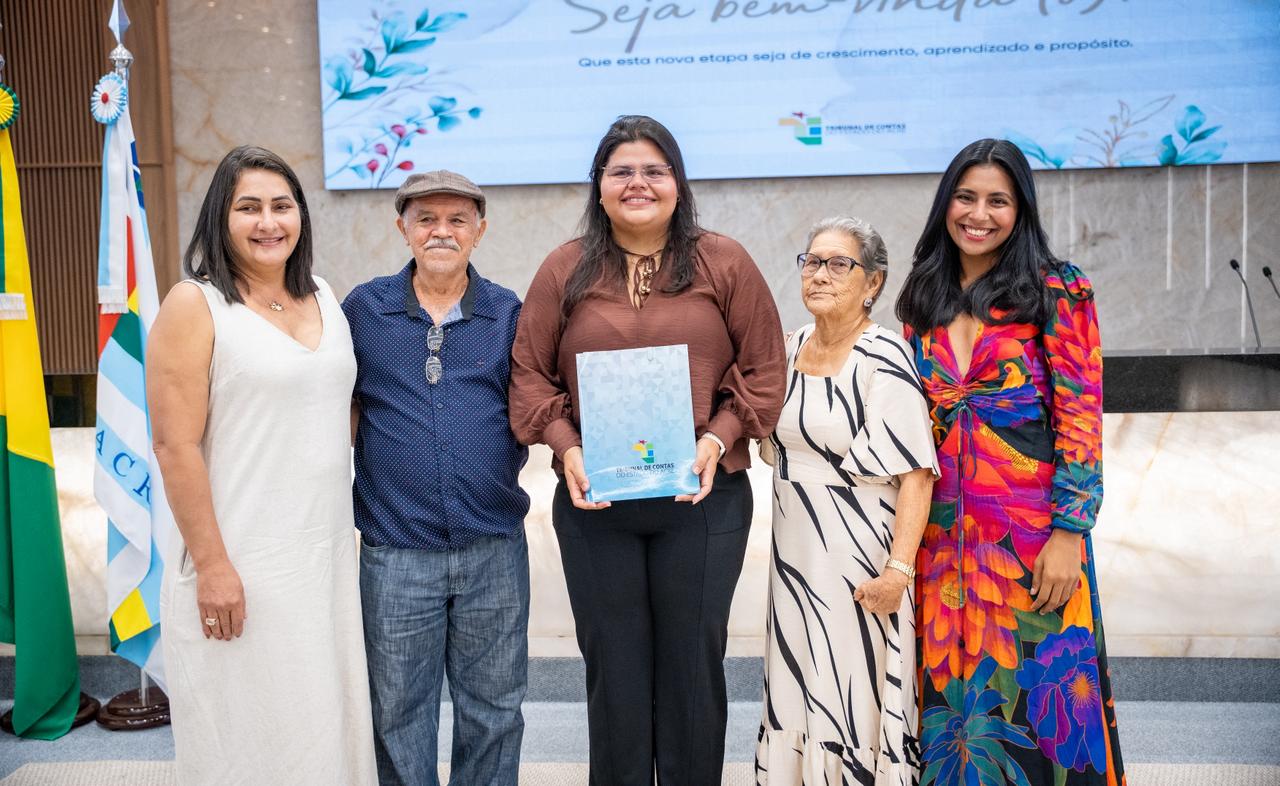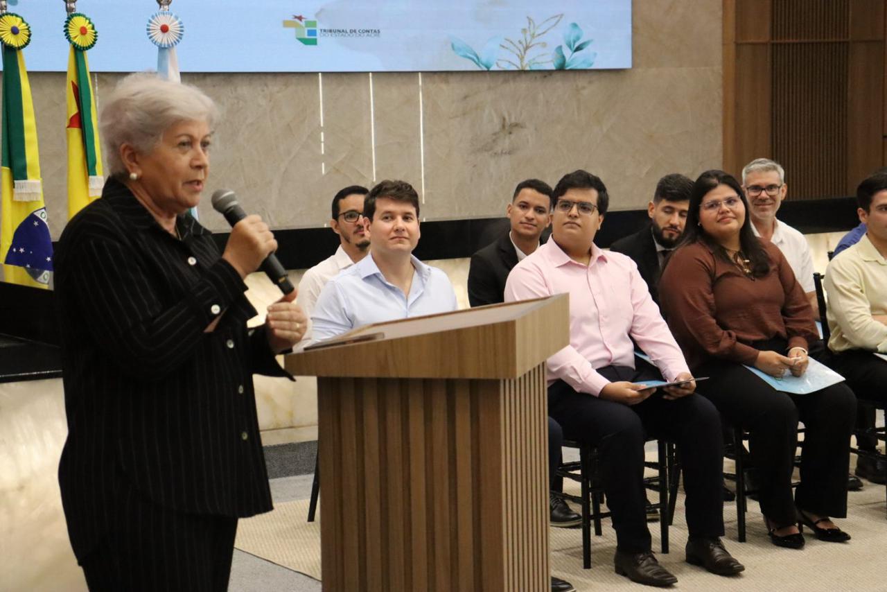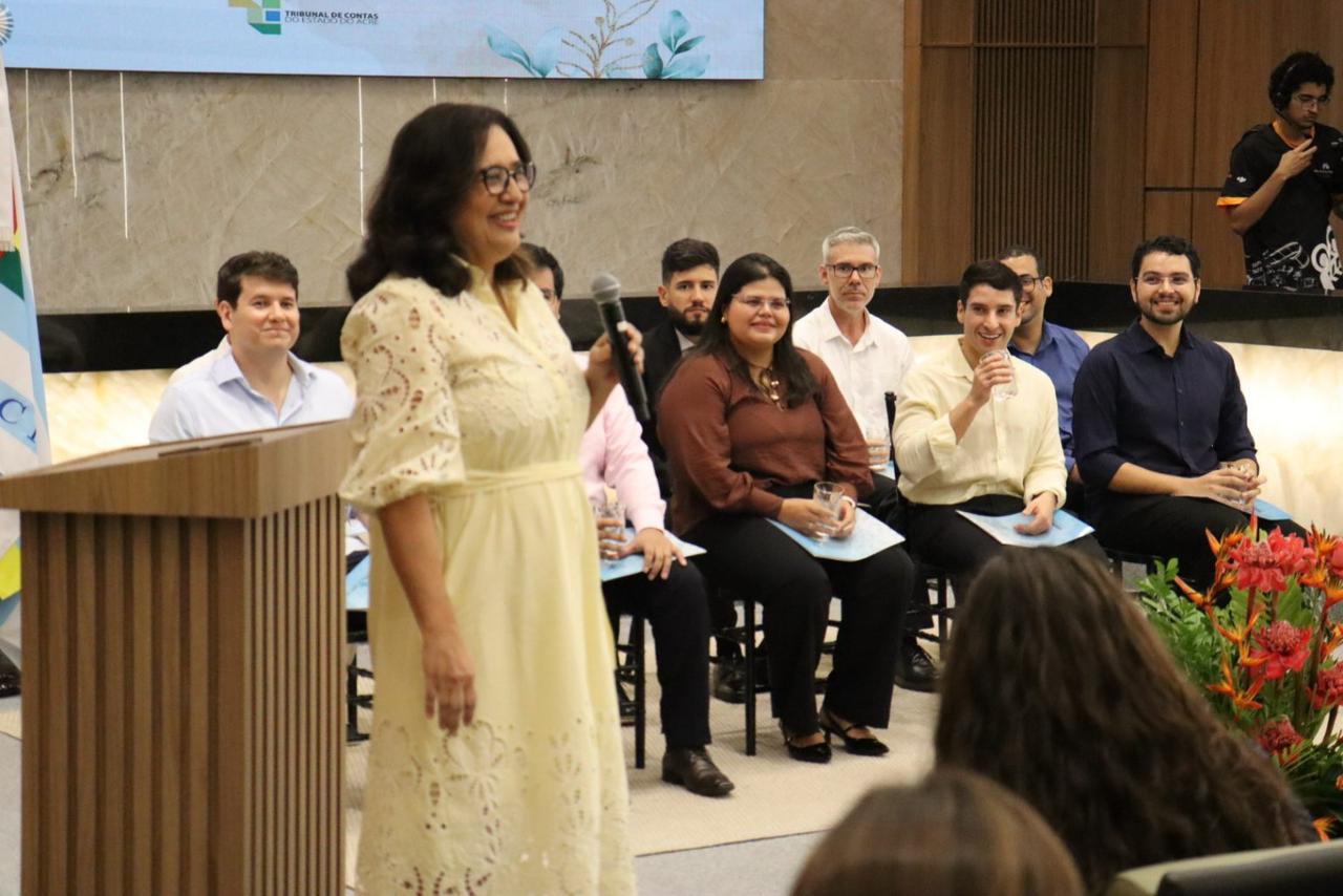 A primeira fala da solenidade foi da diretora da Escola de Contas do TCE-AC, conselheira Naluh Gouveia, que destacou o papel das famílias na trajetória dos novos servidores e o perfil institucional do Tribunal neste novo momento.