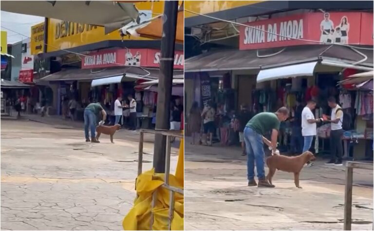 Alerta de fofura! A reportagem do ContilNet recebeu, nesta quarta-feira (21), uma imagem que – por que não? – quebra a sequência de notícias pesadas dos últimos dias. O registro mostra um homem, flagrado no Calçadão da Benjamin Constant, em Rio Branco, oferecendo um singelo “momento de beleza” a uma cadelinha em plena via pública.