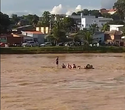 O episódio foi registrado em meio à elevação do nível do Rio Acre, que às 15h deste domingo atingiu a marca de 14,57 metros e continuava subindo. Com o rio cheio, a força da correnteza aumenta e objetos como troncos e balseiros passam a circular de forma imprevisível, criando um cenário de alto risco para quem se aventura na água.