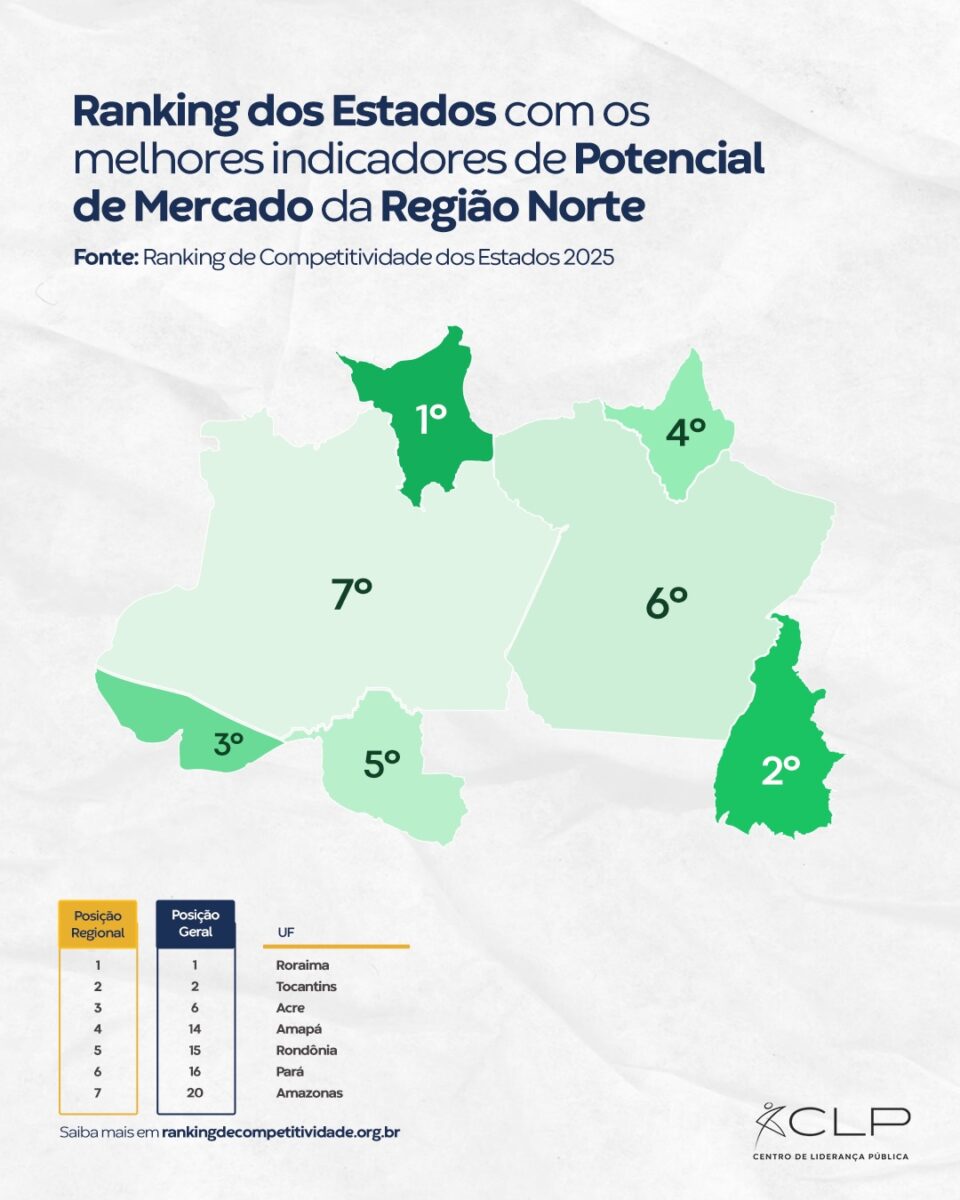 Na postagem, verifica-se que o Estado está a frente de outras unidades federativas com PIBs mais robustos, como o Pará e o Amazônas. De acordo com os dados, o pilar de Potencial de Mercado avalia o tamanho da economia e a capacidade de expansão nos próximos anos, levando em consideração fatores como crescimento recente do PIB, perspectiva de ampliação da força de trabalho e condições do mercado de crédito.