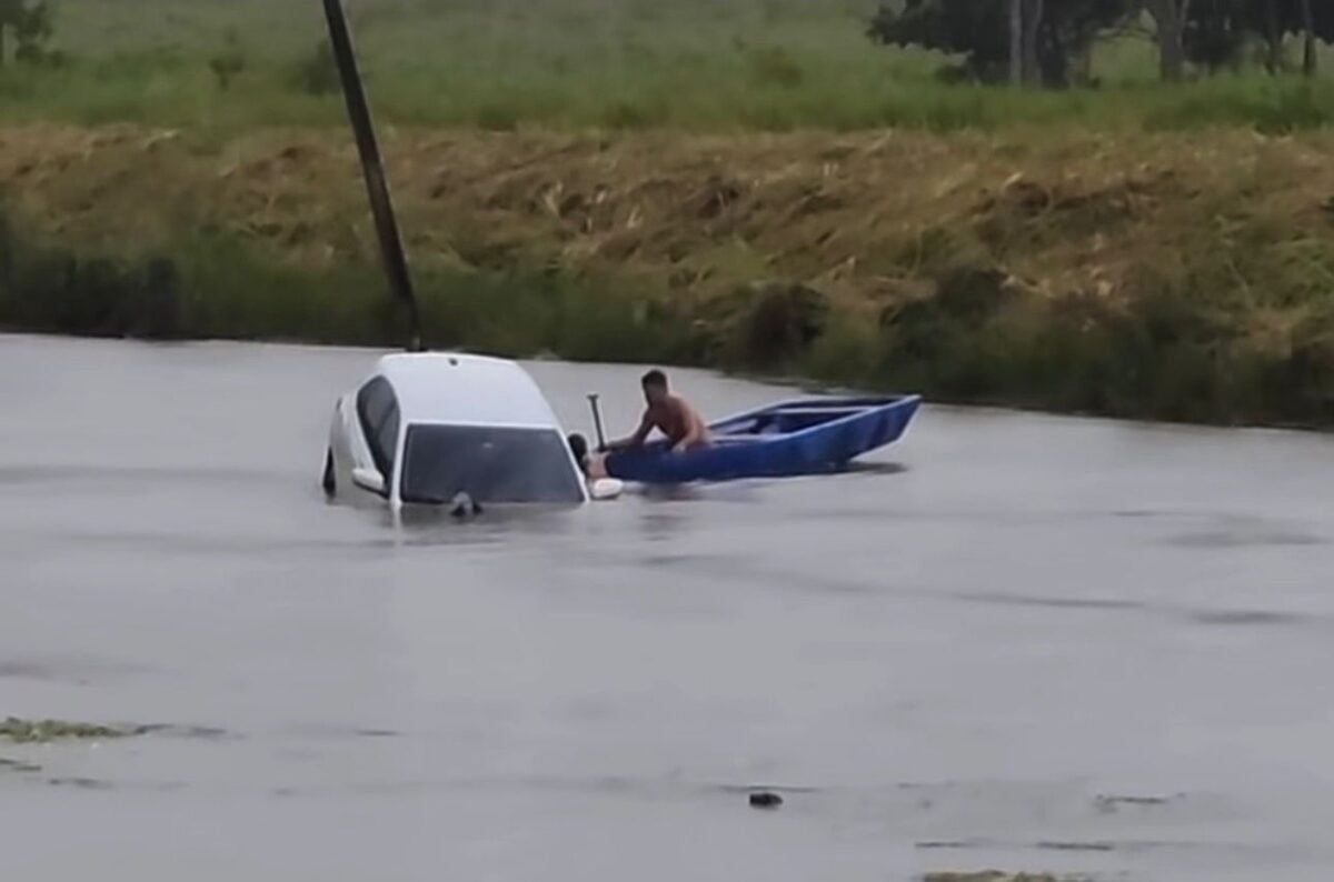 As imagens revelam a rapidez da ação de um morador da região, que utilizou uma canoa para se aproximar do veículo, que estava parcialmente submerso. Ele consegue alcançar a motorista e ajudá-la a sair do automóvel com segurança, antes que a situação se agravasse. No momento do acidente, chovia na região. A combinação de pista molhada e baixa visibilidade pode ter contribuído para que a mulher perdesse o controle da direção, embora essa hipótese ainda não tenha sido confirmada oficialmente.