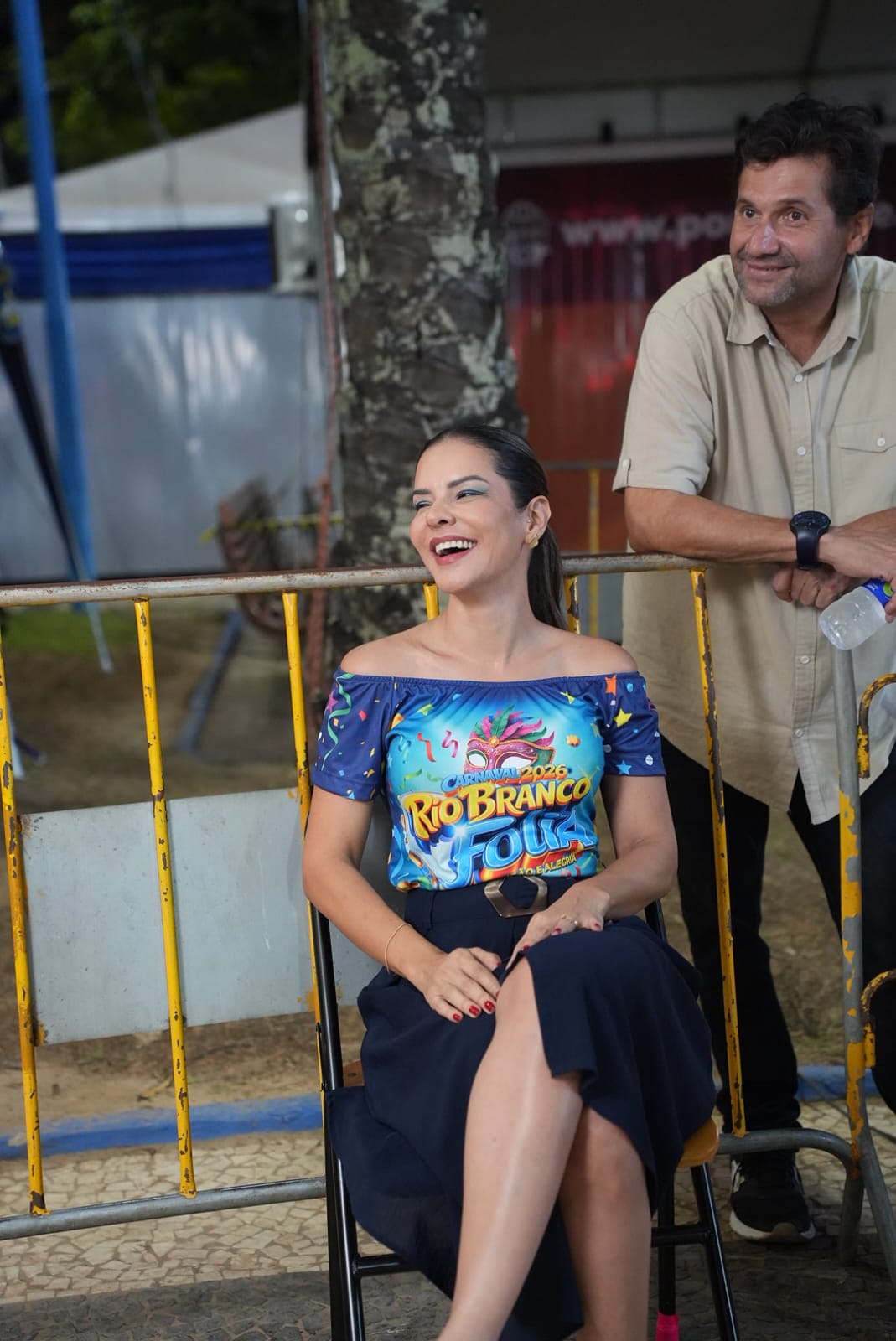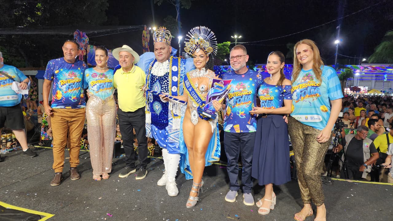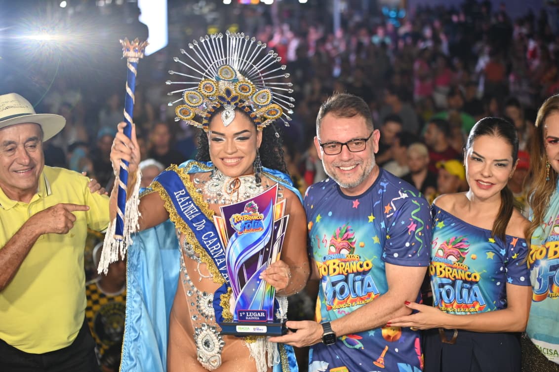 Um dos destaques foi a coroação de Luiza Souza, escolhida como Rainha do Carnaval de Rio Branco. Ela recebeu a coroa das mãos do prefeito Tião Bocalom, do vice-prefeito Alysson Bestene e da presidente da Associação Comercial, Industrial, de Serviços Agrícolas do Acre (Acisa), Patrícia Dossa, em um momento de grande emoção e aplausos.