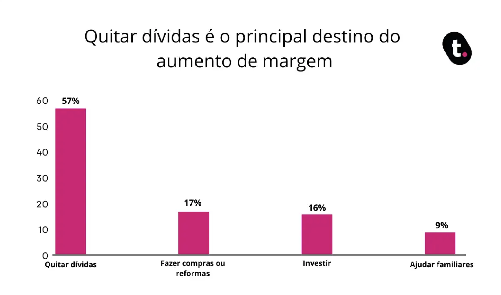 De acordo com pesquisa realizada na plataforma de crédito meutudo, a Datatudo, 57% dos entrevistados que são beneficiários do INSS afirmaram que usariam o aumento da margem consignável para quitar dívidas já existentes.