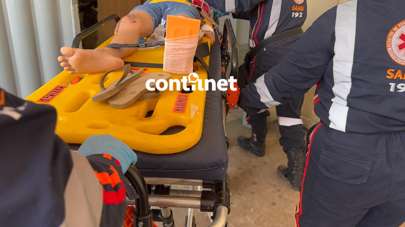 Com o impacto, a criança foi arremessada por cerca de cinco metros e sofreu fratura na perna esquerda, traumatismo cranioencefálico (TCE) leve e diversas escoriações pelo corpo. O motociclista teve escoriações nos braços e nas mãos.