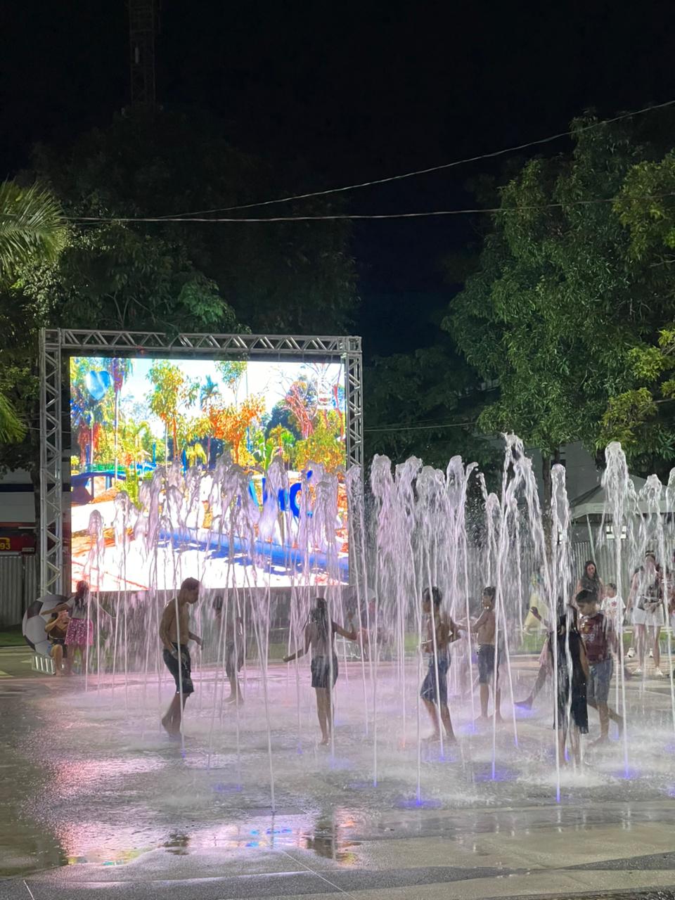 A fonte de água da Praça da Revolução, em Rio Branco, virou ponto de diversão para dezenas de crianças na noite deste domingo (15) de Carnaval. Em meio ao calor e à programação festiva organizada pela prefeitura, meninos e meninas de várias idades aproveitaram o espaço para se refrescar.