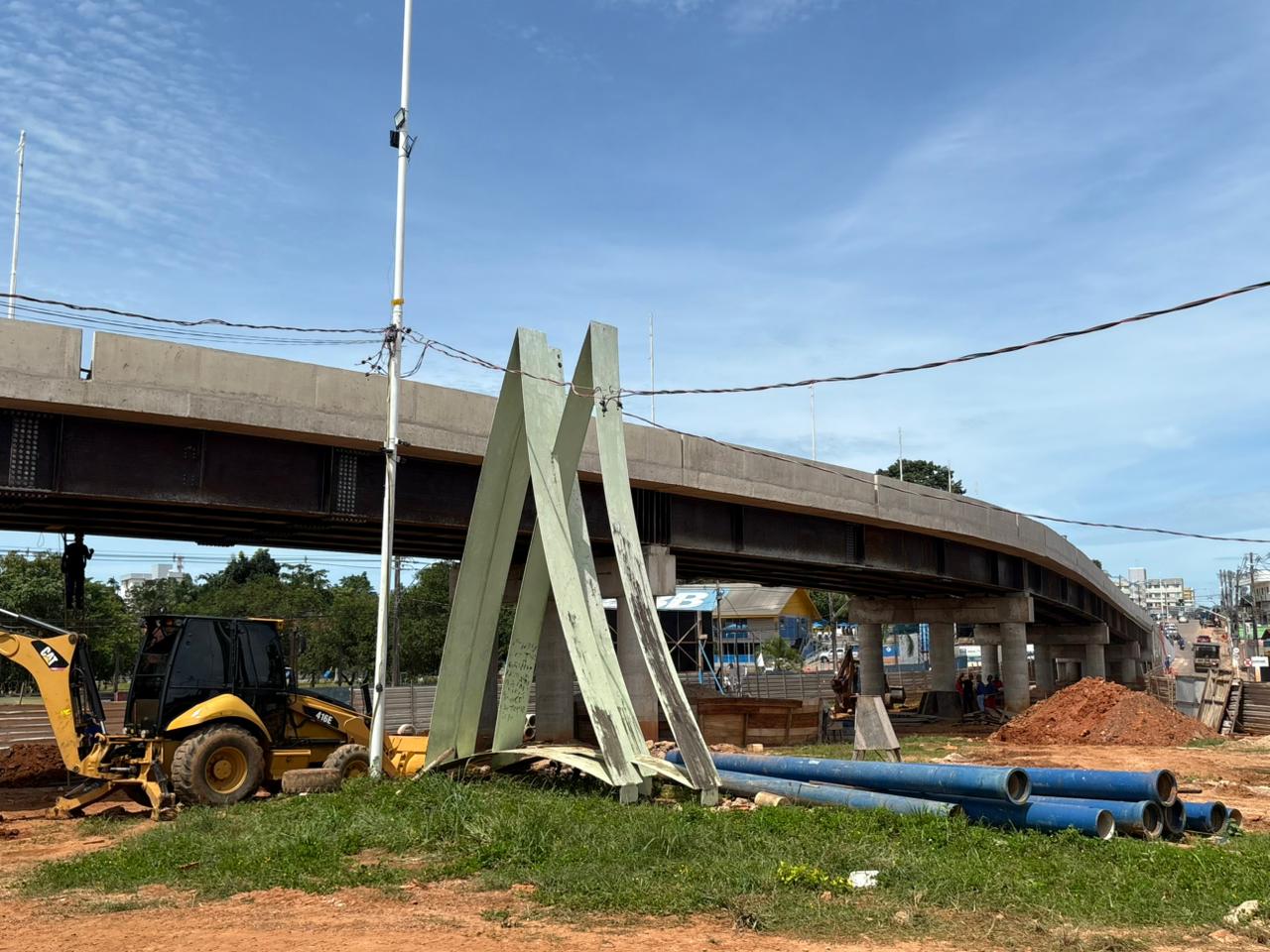Além da pista superior já asfaltada, as equipes trabalham agora na instalação da iluminação pública e nos acabamentos estruturais. As paredes laterais da via passam por lixamento para posterior pintura, enquanto a parte inferior do elevado concentra os serviços de urbanização.