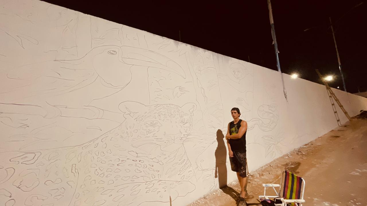 “A gente foi chamado novamente pela Secretaria de Obras. O projeto já vem praticamente pronto, dentro de uma pegada mais de design, e agora estamos no processo inicial, que é pintar tudo de preto, fazer a base, para depois começar a jogar as cores”, explica.