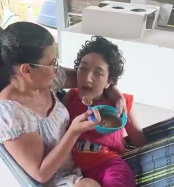 A moradora da Comunidade Assis Brasil, em Cruzeiro do Sul, Nayane, de 27 anos, enfrenta dificuldades após ter o benefício assistencial suspenso em outubro de 2025. Diagnosticada com paralisia infantil, ela é totalmente dependente da mãe, Maria Naís Brandão Lima, para atividades diárias e cuidados permanentes.