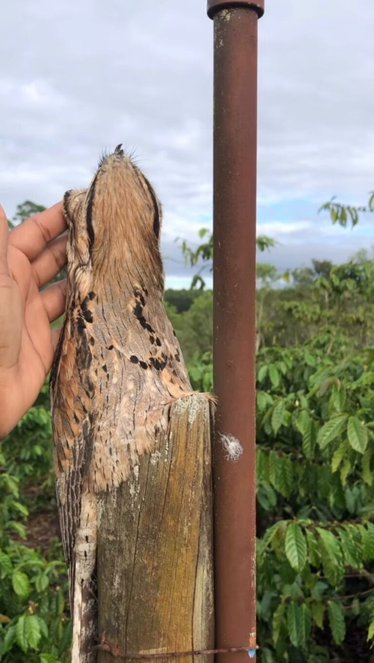 Uma das características mais marcantes do urutau é a habilidade de praticamente “desaparecer” na paisagem. Com plumagem em tons que imitam madeira e postura ereta sobre galhos, ele se mistura ao ambiente com facilidade, estratégia essencial para se proteger de predadores.