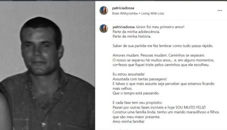 No texto, Patrícia revela que Júnior foi seu primeiro amor e alguém que marcou profundamente sua adolescência e sua história de vida. “Júnior foi meu primeiro amor. Parte da minha adolescência. Parte da minha história”, escreveu.