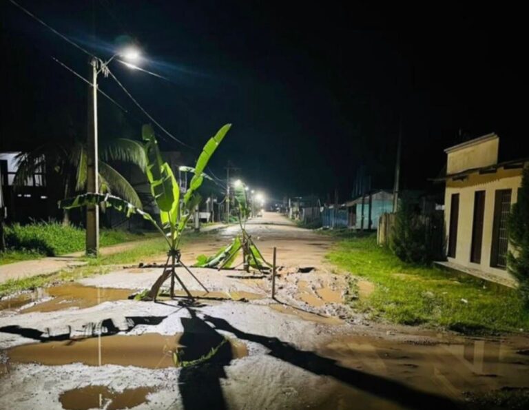 Moradores do município de Jordão, no interior do Acre, recorreram a uma forma inusitada de protesto para chamar a atenção das autoridades: o plantio de bananeiras em plena Avenida Francisco Dias. A ação simbólica denuncia o estado precário da via, que há tempos enfrenta problemas como buracos, lama e falta de manutenção.