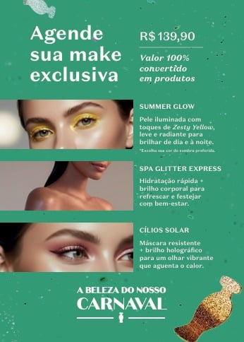 “Queremos que a loja seja o ponto de partida da celebração. Nossos consultores estão preparados para criar produções que acompanham o ritmo do Carnaval, com tecnologias de longa duração e acabamentos que brilham tanto de dia quanto à noite”, afirma Maria Clara Deboni, gerente sênior de Experiência e Serviços do Grupo Boticário. Os agendamentos podem ser realizados pelo link https://agendamentoservicos.boticario.com.br/
